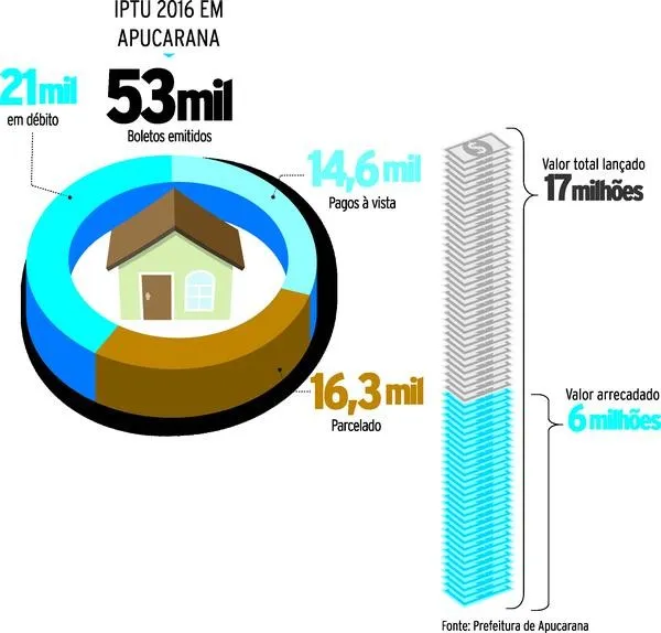 Dos cerca de 53 mil boletos enviados aos contribuintes apucaranenses neste ano, 14,6 mil já foram quitados à vista. Já o pagamento parcelado foi feito por 16,3 mil pessoas, que já pagaram a primeira parcela, vencida no último dia 10 de março. Com isso, quase 60% dos contribuintes já quitaram o IPTU ou ao menos pegaram a primeira parcela, estando em dia com o imposto.