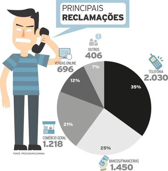 O número de reclamações de compras online tem registrado um crescimento progressivo nos últimos anos na unidade do Procon de Apucarana. Por exemplo, no último semestre de 2015, o órgão registrou cerca de 80 queixas por mês. Já neste semestre, o dígito saltou para 115, o que representa um aumento de 43% neste tipo de atendimento. Entre os principais motivos que têm levado os consumidores a procurar o Procon estão a não entrega do produto e o descumprimento do prazo de entrega.