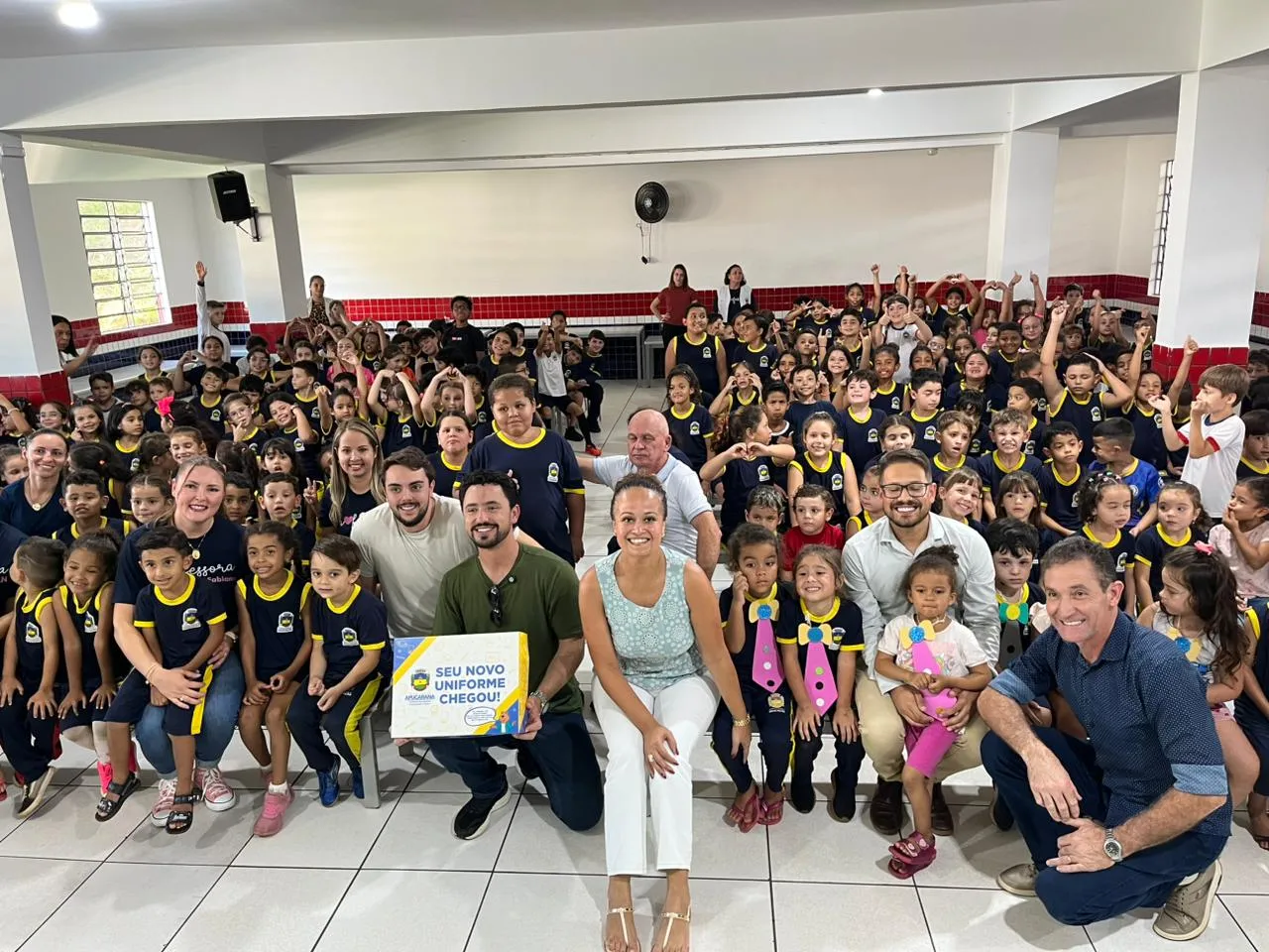 A Prefeitura de Apucarana realizou, na tarde desta sexta-feira (27), a entrega oficial dos novos kits de uniformes escolares para os 13 mil alunos da rede municipal. A solenidade ocorreu no CMEI José Ignácio Neto e na Escola Municipal José Brasil Camargo, localizados no Núcleo Michel Soni.