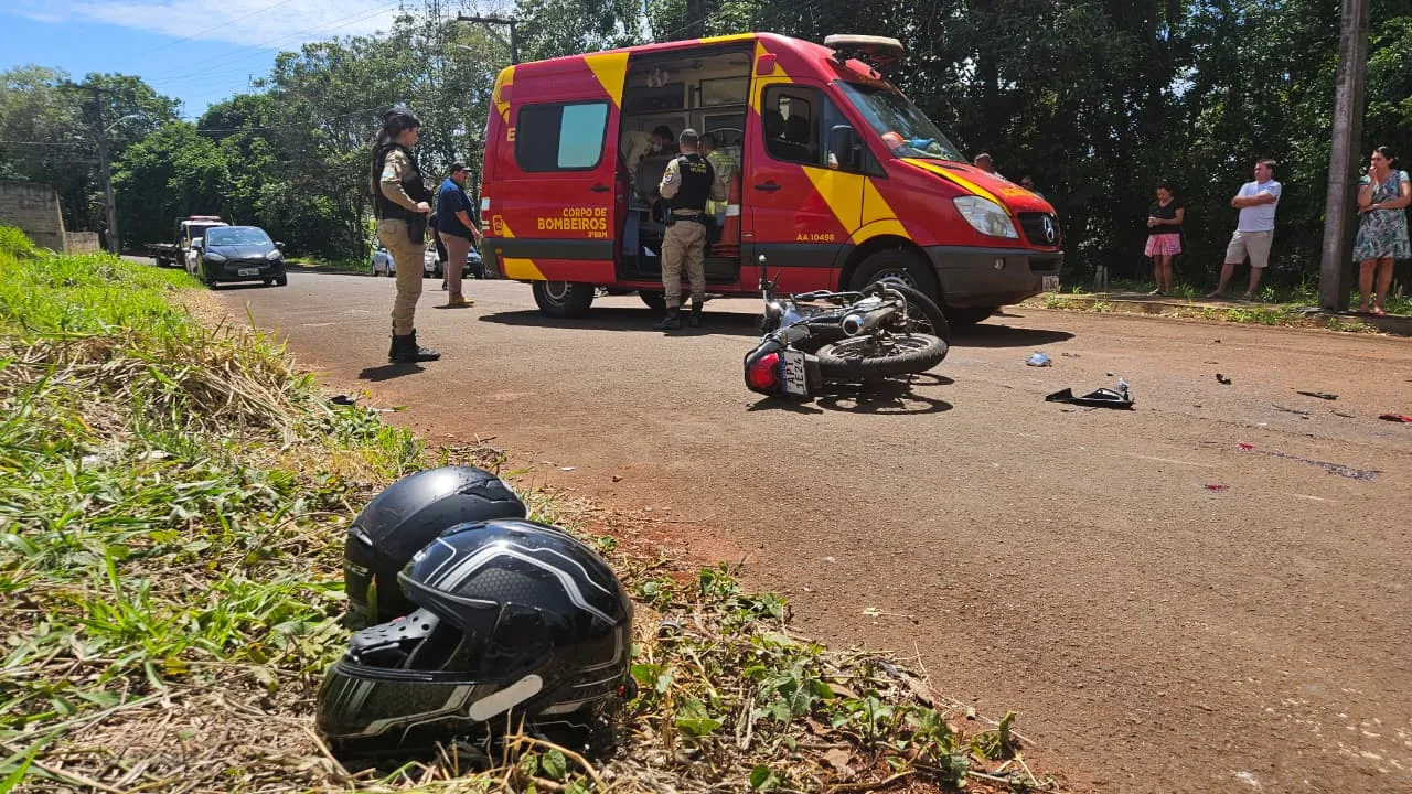Um acidente deixou duas pessoas feridas na manhã de ontem, no Residencial Araucária, região norte de Apucarana. O casal, que estava em uma motocicleta, se envolveu em uma colisão com uma Range Rover enquanto estava a caminho de uma visita familiar. O motociclista ficou em estado grave.
