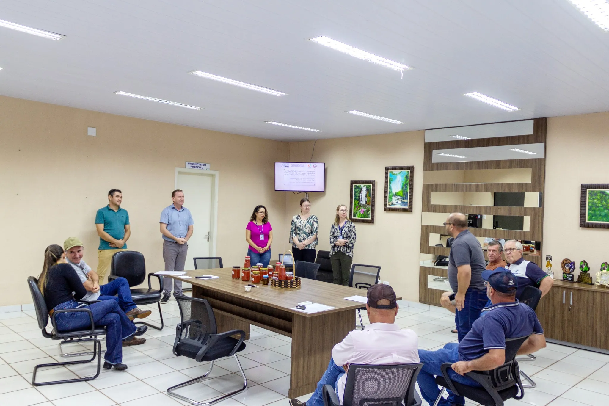 A reunião contou ainda com a presença de autoridades municipais e representantes de instituições parceiras, reforçando o compromisso conjunto com o desenvolvimento sustentável da cadeia produtiva do Tomate de Faxinal.
