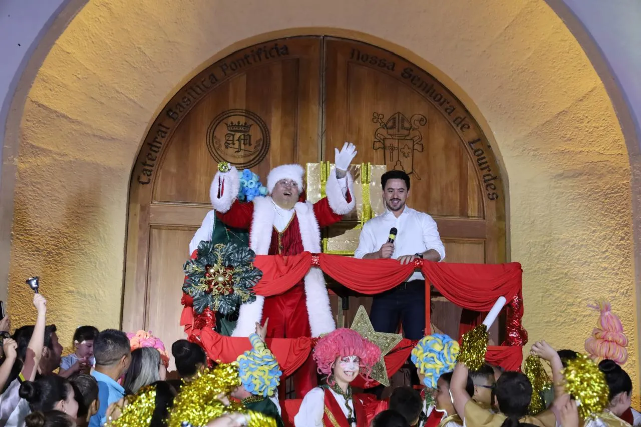 O destaque cultural da noite foi a “Cantata de Natal das Escolas Municipais”, realizada na escadaria da Catedral. Familiares dos estudantes acompanharam as apresentações. O pai de uma das alunas, Uemerson de Paula, relatou a expectativa para o evento e os planos familiares para a data. “É emocionante, como pai a gente ver a apresentação”, comenta, acrescentando que a família já entrou no clima natalino. “A gente tá planejando até levar ela para cortar árvore para começar a decoração”, afirmou.