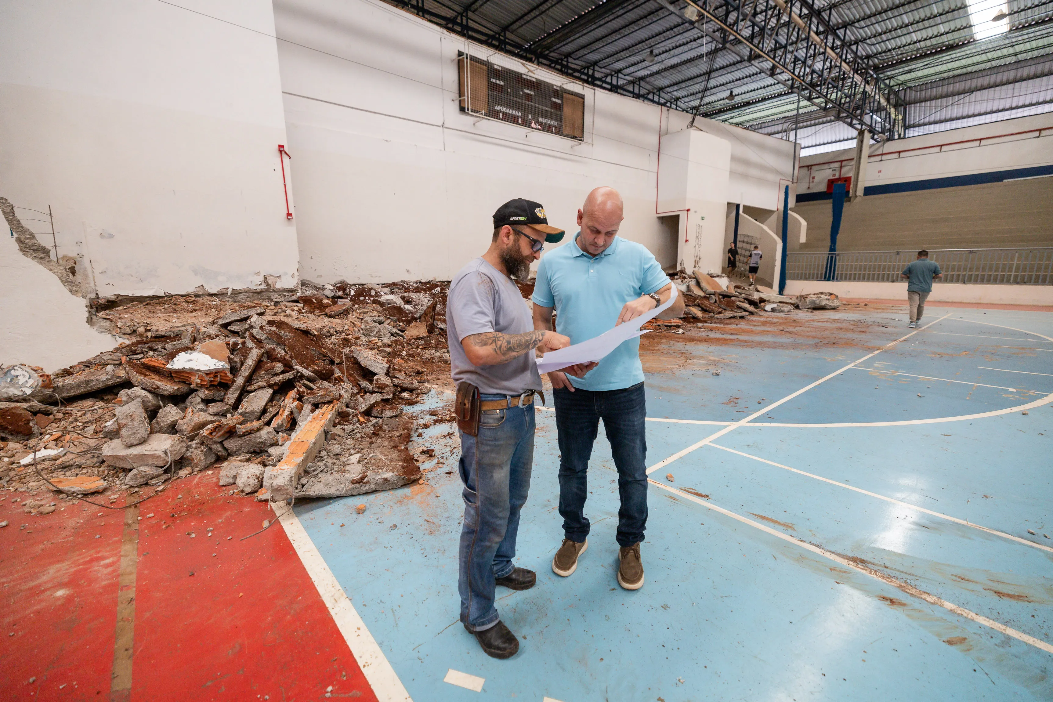As obras começaram com a demolição do palco localizado na parte frontal da quadra. A medida é necessária para a ampliação do espaço de jogo e adequação às dimensões oficiais. “Atualmente, a nossa quadra possui 18 metros de largura por 35,99 metros de comprimento. Para modalidades como o futsal e o handebol, o tamanho exigido é de 20 por 40 metros. A adequação da quadra às medidas oficiais, somada à implantação de piso modular e à instalação de 2,5 mil assentos individuais nas arquibancadas, permitirá que o ginásio volte a sediar competições oficiais”, detalhou o secretário.