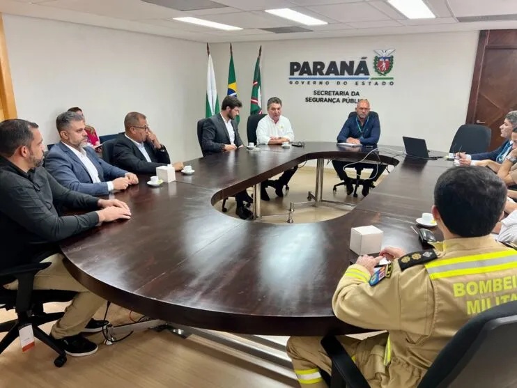 Cumprindo agenda em Curitiba nesta segunda-feira, o prefeito de Arapongas, Sérgio Onofre da Silva (PSC), esteve reunido com o deputado estadual Tiago Amaral (PSD), o secretário de Segurança Pública, coronel Hudson Teixeira, e equipe.